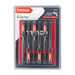 A set of needle files, manufactured from hardened high grade steel for professional tool life and performance during precision and delicate work. Featuring soft-grip handles for user comfort. Ideal for shaping metal, stone, ceramics, glass and other hard materials.