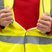 High visibility yellow waistcoat with highly reflective panels to body and shoulders for visibility, particularly during the hours of darkness.